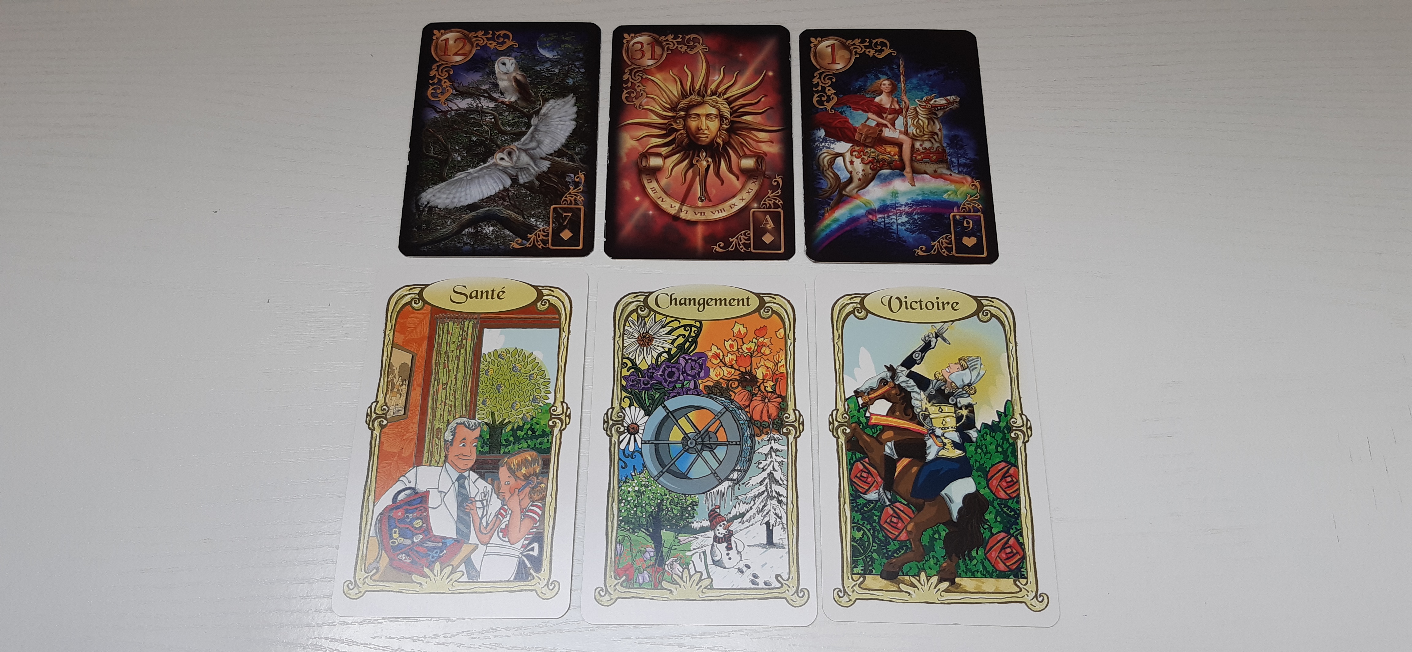 Les deux cartes de Coupe (le Bourgeon et le Père) parlent d’un renouveau, de quelque chose qui émerge, mais également d’une attitude sage et protectrice vis-à-vis des enfants.
