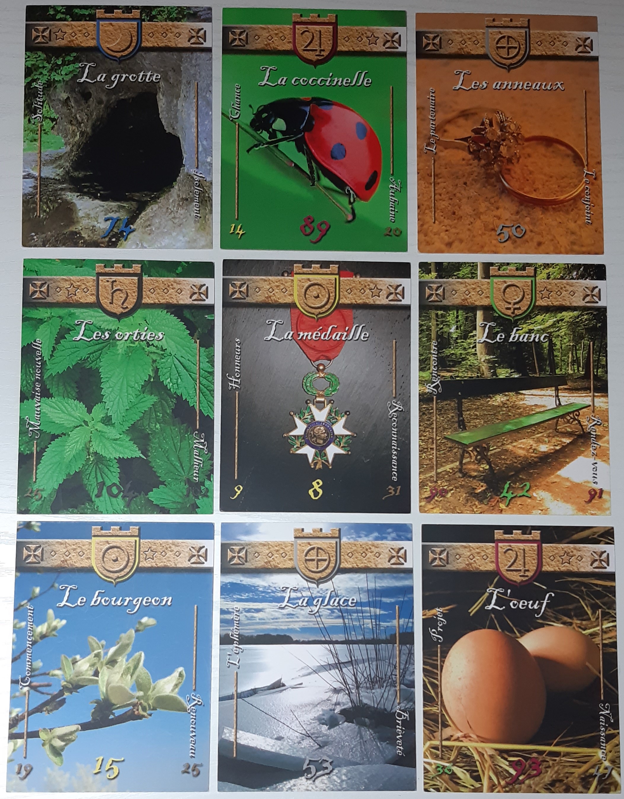 La MÉDAILLE représente les gratifications, les récompenses (voyez le lien avec la carte « Doux-amer » et ce gâteau qu’on veut vous offrir), les honneurs, mais également la notoriété et la mise en valeur de son image. Elle peut également symboliser tout ce qui est propre à l’Armée. Ou encore la possibilité de « monter en grade », de passer à un niveau supérieur, quelle que soit la situation.