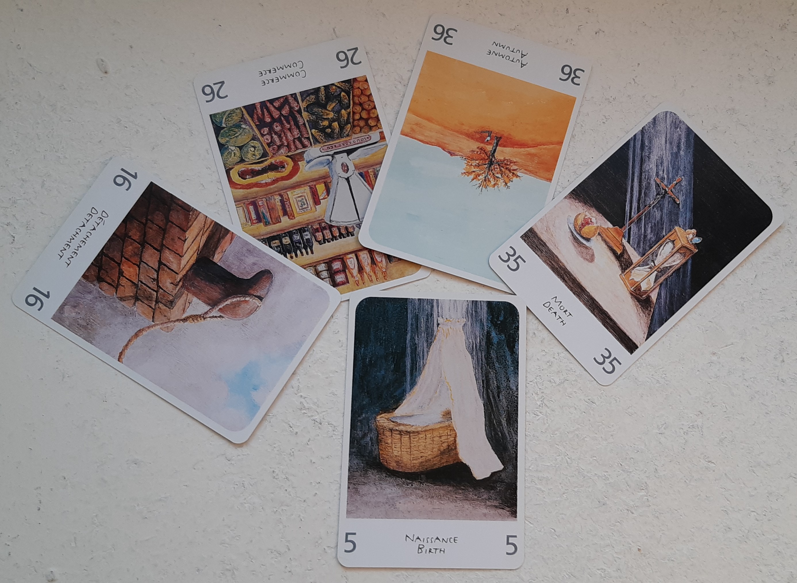 On voit bien qu’avec la carte du COMMERCE les échanges sont bloqués. Parce que vous refusez de vous dépouiller, de faire tomber vos masques, votre ancienne « peau » (AUTOMNE), malgré la carte de la MORT qui initie un changement, qui impose de quitter un cycle pour aller vers un nouveau (NAISSANCE). Vous seul avez le pouvoir de tout débloquer pour passer à autre chose de bien meilleur.