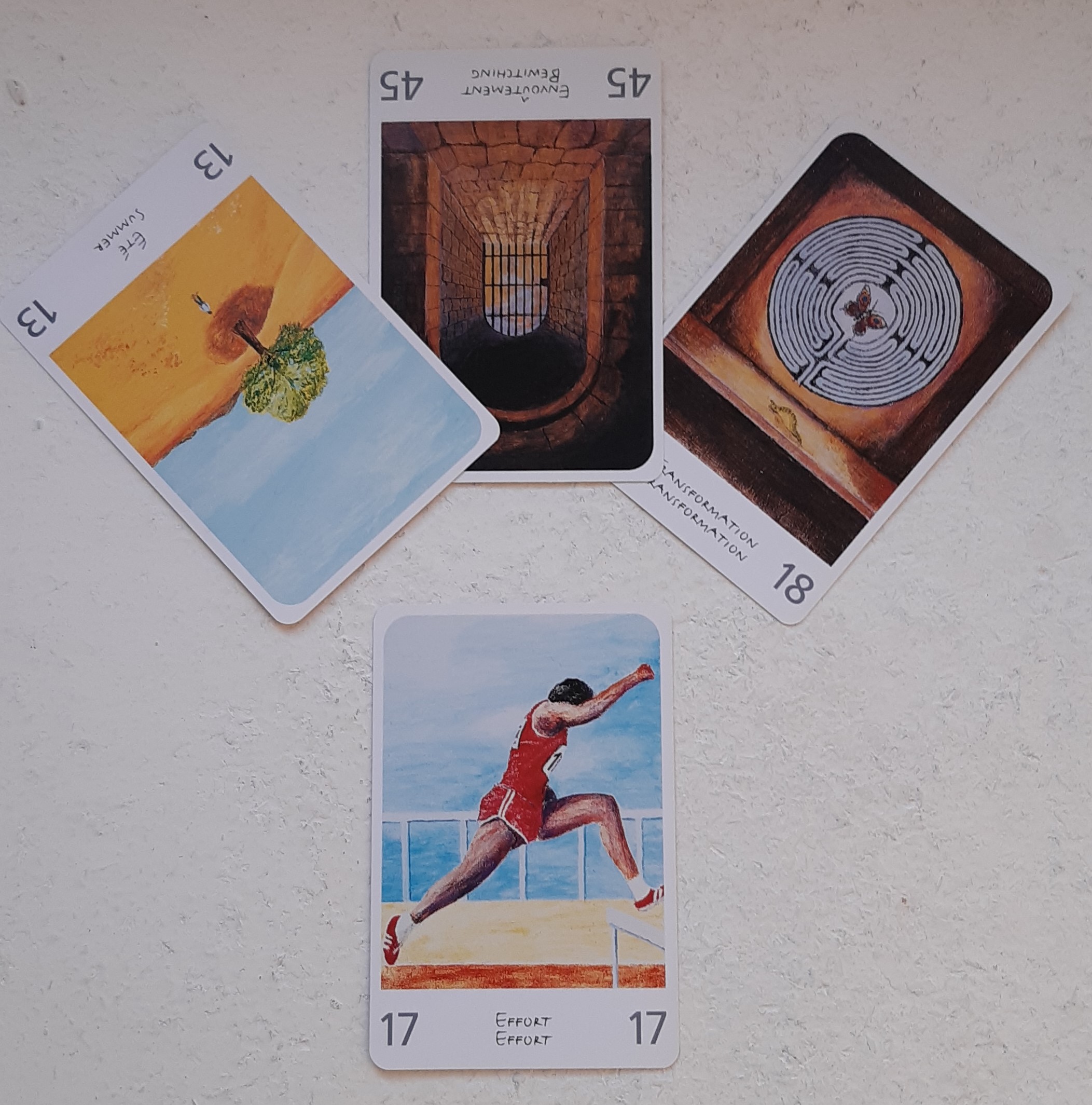 Cette carte vous montre que, ça y est, vous êtes bien décidé à agir pour aller vers cette transformation. Vous faites même un pas de géant en avant, victorieux (se), rempli (e) d’énergie et de vitalité. Cette carte va également colorer positivement le tirage avec cette poussée en avant dynamisante. Vous acceptez de tourner la page !