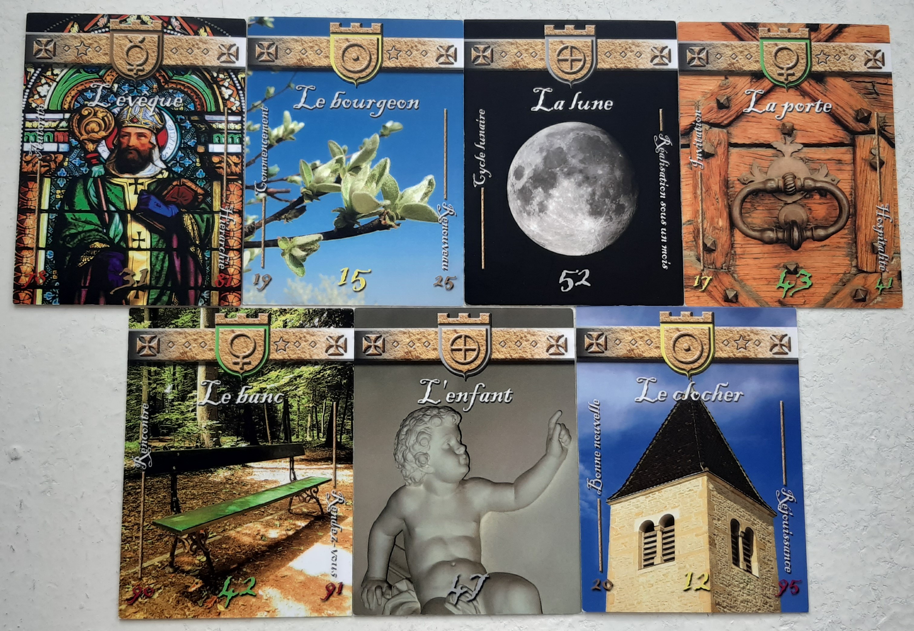 Enfin, la quatrième colonne présente ces trois cartes : JOIE, JALOUSIE et LOI.