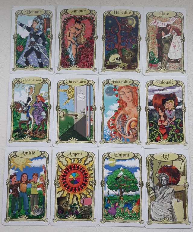 J’ai eu envie de faire un tirage approfondi sur le sujet. Il concerne donc toute la période de l’année, sans distinction de mois ou de trimestres. Mais comme l’un des oracles que j’ai choisis comporte des cartes « saisons », il est possible d’obtenir des périodes au cours desquelles certains événements peuvent avoir lieu.