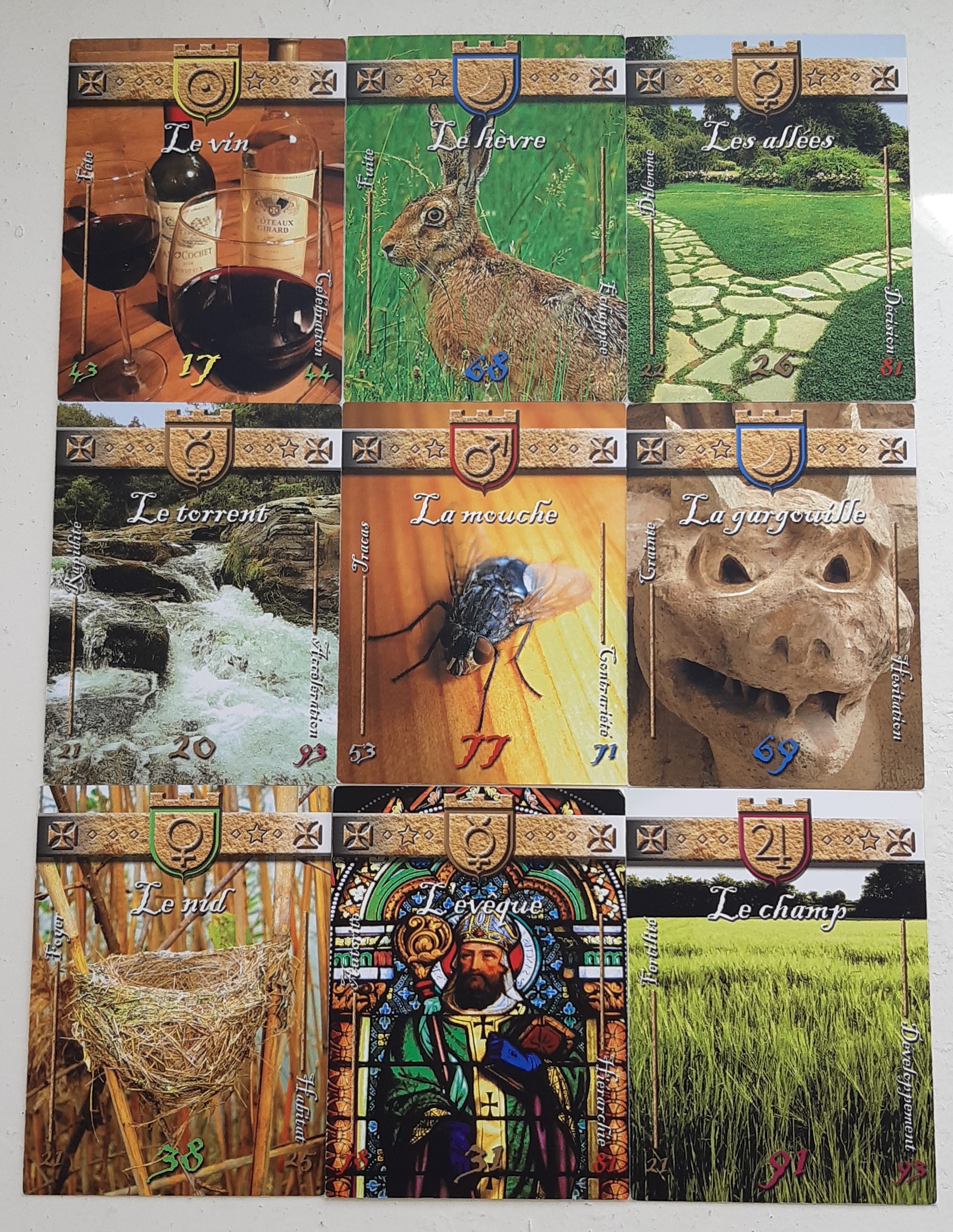 À sa gauche et à sa droite, nous avons LE TORRENT (20) et LA GARGOUILLE (69). Ceux-ci révèlent clairement cette accélération des craintes parfois infondées, de l’hypervigilance, mais également des peurs et des cauchemars qui se manifestent avec force et amplitude, et de façon soudaine (la Gargouille pour les peurs et la prudence excessive, le Torrent pour la rapidité et l’intensité).